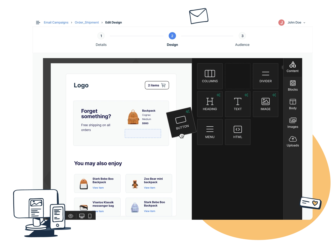 Design professional emails in minutes with our powerful drag-and-drop builder. No coding is required; simply select elements such as text blocks, images, buttons, or social links and arrange them exactly how you want. The builder automatically optimizes emails for mobile devices and provides real-time previews before sending. This feature makes our Email Marketing Software ideal for marketers who want flexibility and speed when designing campaigns.
